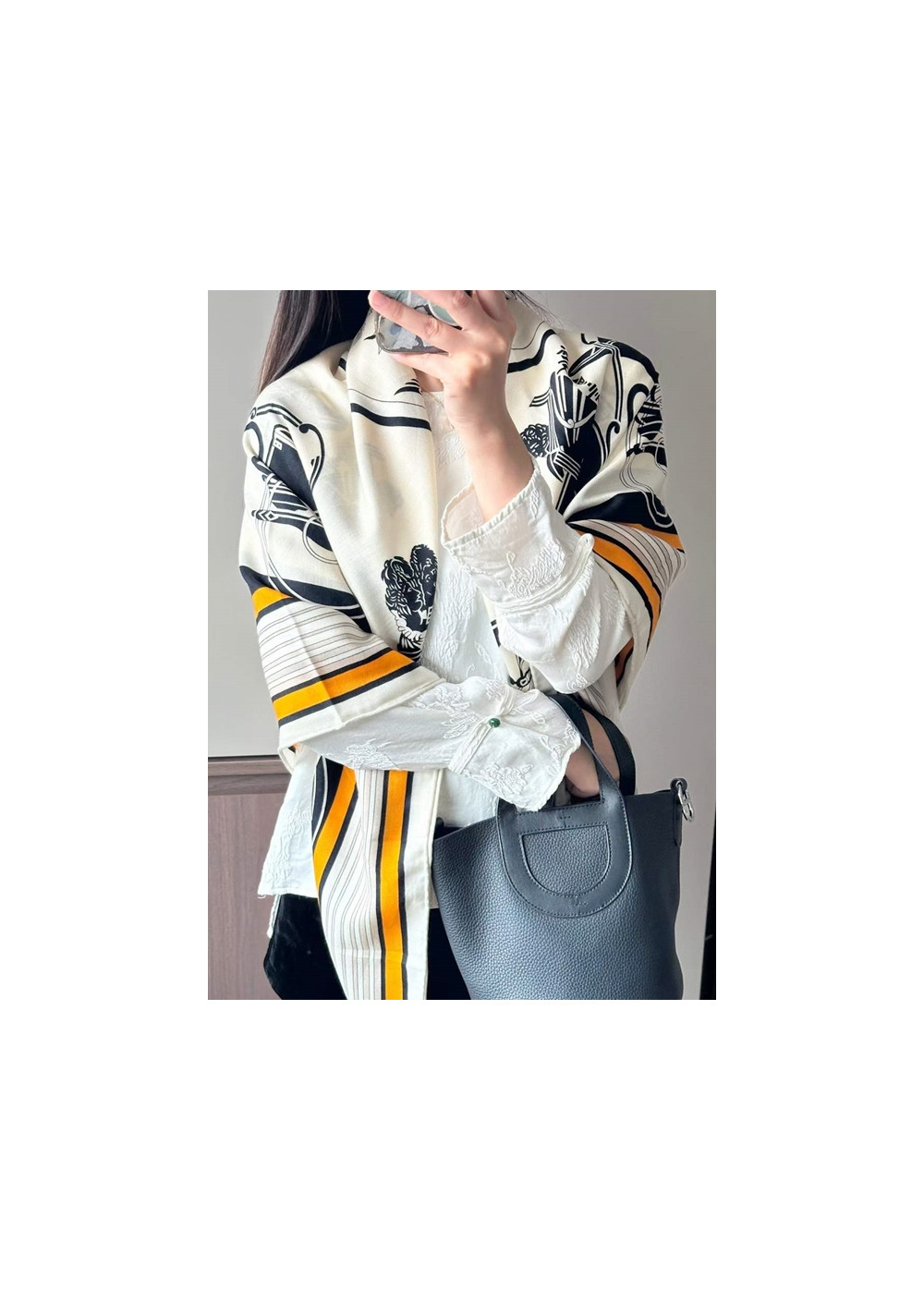 어깨에 살짝 걸쳐서 코디할 수 있는 스카프는